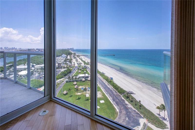 Contemporary, pristine 2205sf 2 bedrm + murphy bed, 3 bathrm corner home in the sky offers panoramic ocean, intracoastal & city lights views. Savor breathtaking sunset & ocean views, manicured gardens & tropical pools from wrap balcony, floor to volume ceiling glass walls & spacious great room w-formal dining area. Expansive bright kitchen opens to […]