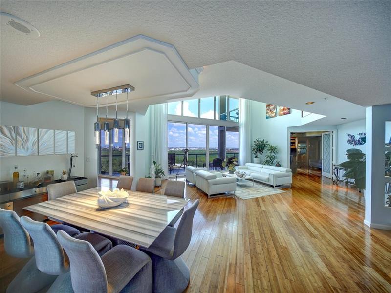 Exquisite two story PENTHOUSE HOME with incredible expansive Intracoastal, park and city light views from every room Neutral walls and ceilings with fine details, handsome fixtures & built-ins make a beautiful backdrop for most any style of furnishings. Huge kitchen w/island.Flexible floor plan allows for a master suite on either 1st or 2nd floor.